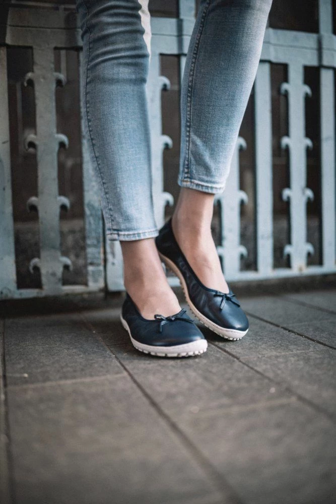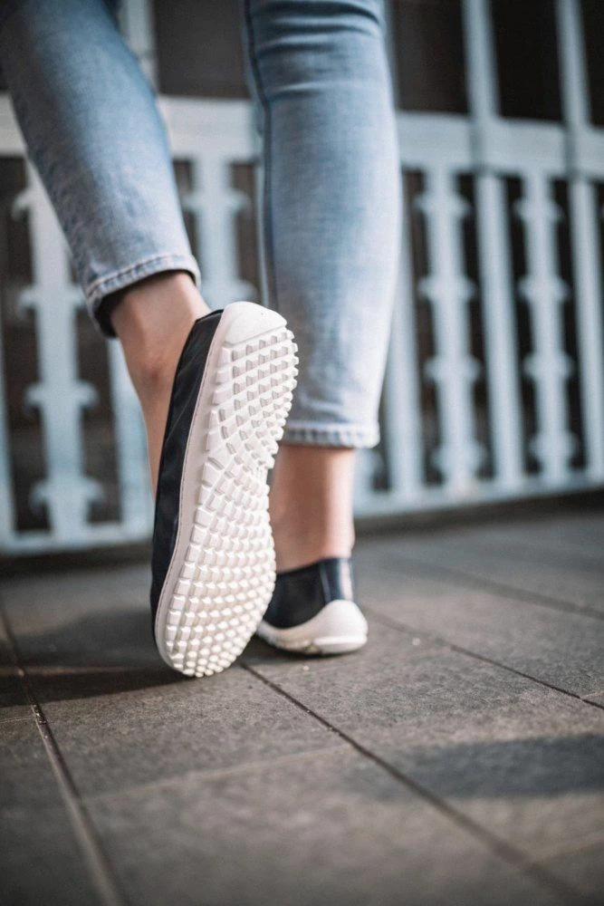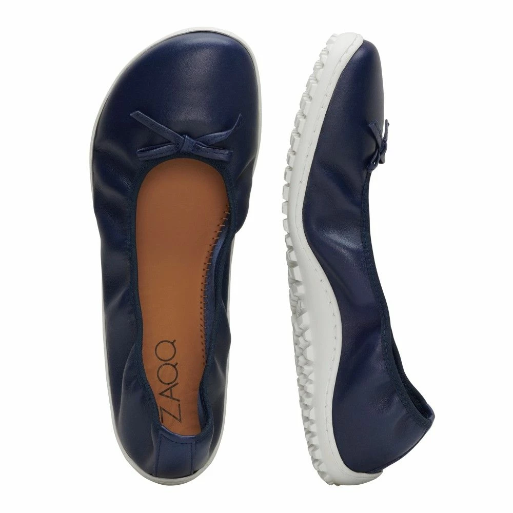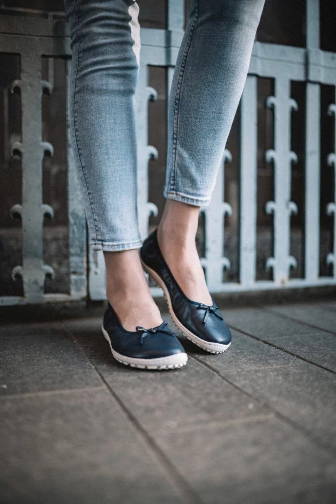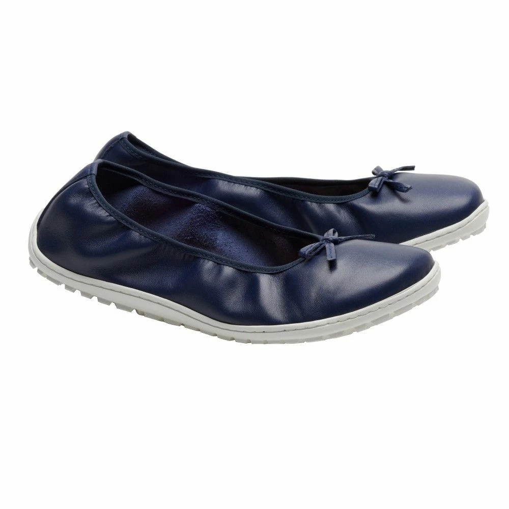 Mit dem weichen Glanzleder und der schönen Zierschleife sieht dieser Barfußschuh feminin elegant aus. Einen sportlichen Touch bekommt er durch die helle Sneakersohle. SUQAR Darkblue schlägt zwei Fliegen mit einer Klappe. Er geht als Sportschuh durch, du kannst ihn aber auch elegant zum Kleid tragen. Dieser Ballerina ist immer genau richtig – nicht zu leger, nicht zu vornehm.